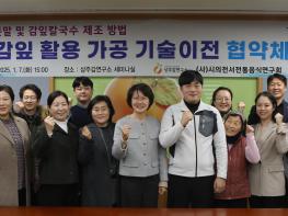 경북도농업기술원은 감잎의 부가가치를 높이고 이를 지역 특산물로 개발하기 위해 7일 상주감연구소에서 ‘감잎분말 및 감잎칼국수 제조 기술’ 이전 협약을 체결했다.