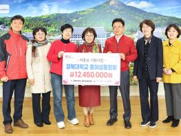 경북대학교 총여성동창회는 지난 20일 경북도청을 방문해 경북사회복지공동모금회를 통해 미혼모 시설 지원을 위해 써달라며 성금 1,245만원을 전달했다고 22일 밝혔다.