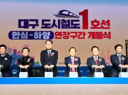 대구도시철도1호선 하양 연장 구간(안심~하양) 철도의 개통식이 20일 경산시 하양역에서 강희업 대도시권광역교통위원회 위원장, 이철우 경북도지사, 홍준표 대구시장, 국회의원, 인근 대학교 총장, 지역 주민 등 500여 명이 참석한 가운데 열렸다.