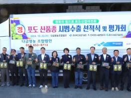 경북도농업기술원은 지난 23일 경산시 압량읍 다금영농조합법인에서 경북육성 신품종 포도‘글로리스타’와‘골드스위트’의 수출을 기념하는 선적식 및 품평회를 개최했다고 24일 밝혔다.