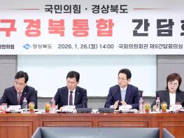 경북도(도지사 이철우)와 국민의힘(경북도당위원장 구자근)은 26일 국회의원회관에서 대구경북통합 간담회를 열고 지역 국회의원의 다양한 의견을 수렴하고 국회와의 협력방안을 논의했다.