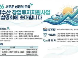 경북도는 경북 지역의 해양수산 전․후방 관련 산업 중소기업 지원을 위한‘2026년 해양수산 창업·투자지원사업’의 참여 홍보와 지원 프로그램 소개를 위한 “찾아가는 사업설명회”를 개최한다고 밝혔다.