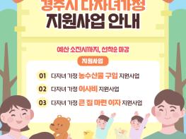 경주시는 다자녀 가정의 경제적 부담을 실질적으로 완화하고 안정적인 정주 기반을 강화하기 위해 ‘2026년 경주시 다자녀 가정 지원사업’을 3월부터 본격 시행한다고 밝혔다.