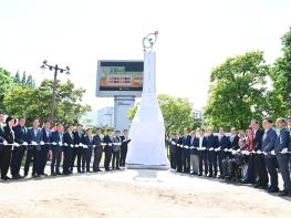 경북 구미 송정공원에 박정희 전 대통령 산업화 기념탑이 건립됐다.8m 높이의 기념탑은 새마을운동 마크, 고속도로, 구미공단 등을 표현하는 디자인으로 구성됐다.