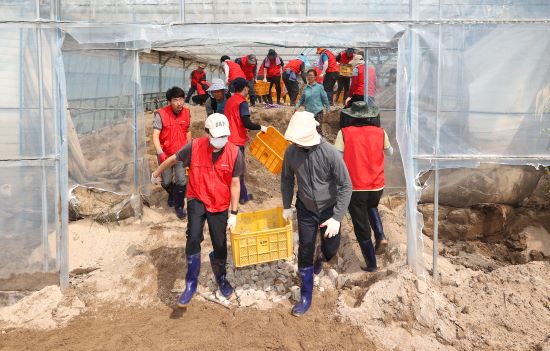 경북도의회는 25일 농수산위원회 및 건설소방위원회 위원 등 도의회 의원을 비롯한 사무처 직원 50여명이 참여한 가운데 경북 북부지역 집중호우로 인해 큰 피해를 입은 봉화군 춘양면 지역의 하우스 피해 현장의 복구작업에 구슬땀을 흘렸다.
