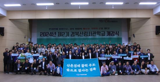 경북도는 22일 청송에 있는 산림조합중앙회 임업인종합연수원에서 ‘산촌경제 활력 주도, 숲으로 잘사는 경북’이라는 주제로 입학생 120여 명이 참석한 가운데 ‘2024년 경북산림사관학교 개강식’을 개최했다.