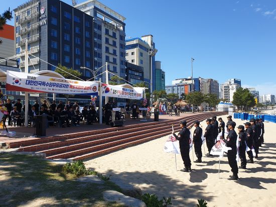 경상북도는 28일 포항 영일대해수욕장에서 기관단체장과 보훈단체장, 특수임무유공자회 회원 등 200여 명이 참여한 가운데 ‘독도지킴이’ 행사 출정식을 가졌다.
