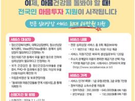 전국민 마음 투자 지원사업은 정부의‘정신건강정책 혁신방안’에 따라 전 국민의 마음건강 돌봄체계 구축을 위해 올해 하반기부터 시행하는 신규 사업이다.