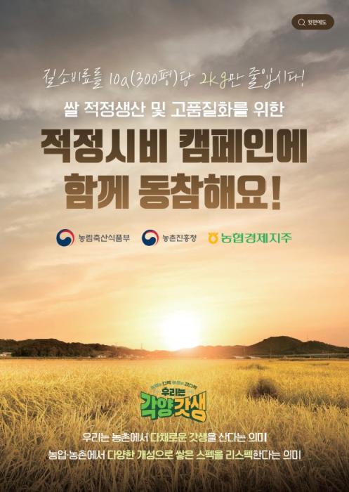 이번 캠페인은 벼 농사에서 밑거름, 가지거름, 이삭거름으로 사용되는 질소비료의 과다시비를 막고자 기존 추진된 ‘3저․3고*’운동의 일환이다.