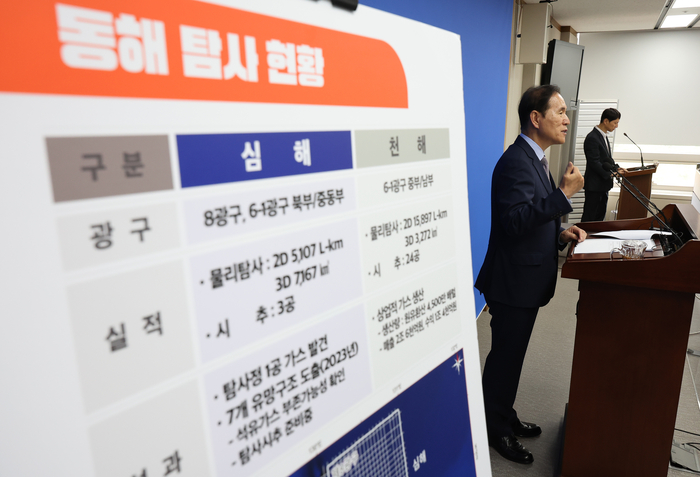 | 김동섭 한국석유공사 사장이 지난달 19일 오후 정부세종청사 산업통상자원부 기자실에서 동해 심해 가스전 개발 현안과 관련해 브리핑을 하고 있다. 기사와 직접적인 연관 없음. [사진 = 연합뉴스] |