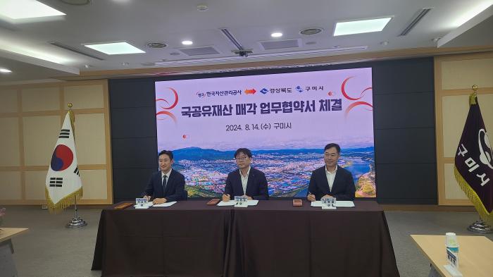 경북도, 구미시, 그리고 한국자산관리공사(캠코)는 14일 구미시청 대회의실에서 유휴․저활용 국․공유재산을 효율적으로 매각하기 위해 공유지분권 일괄 매각 업무협약을 체결했다.