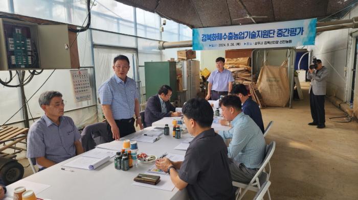 경북도농업기술원은 지난 26일 사과, 화훼, 감 수출 확대를 위한 ‘수출농업기술지원단 중간평가회’를 대학, 기업, 농업인 등 분야별 전문가 30여 명이 참석한 가운데 김천시 사과수출작목반, 상주시 화훼수출작목반, 상주곶감유통센터에서 개최했다고 27일 밝혔다.