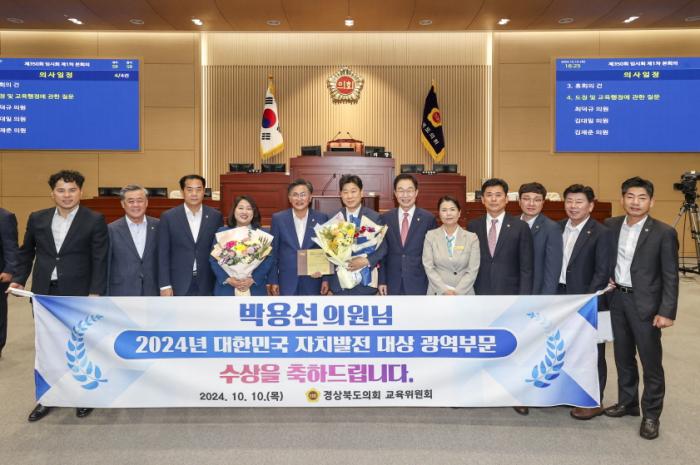 경북도의회 교육위원회 박용선 의원(국민의힘, 포항5)은 지난 25, ()한국자치발전연구원이 주최한 시상식에서‘2024년 대한민국 자치발전 대상 광역부문(지방의회의원)’수상 영예를 안았다고 10일 밝혔다.