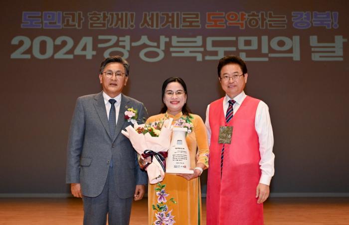 경북도는 23일 도청 동락관에서 개최한 ‘2024 경북도민의 날행사에서 오티펑란(Ngo Thi Phuong Lan) 호치민대학교 인문사회과학대 총장에게 명예도민증을 수여했다.