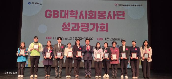 경북도는 지난달 29일 예천군 문화회관에서 2024년 한 해 동안의 대학생 자원봉사 활동 성과를 되돌아보고 향후 활동에 대한 결의와 다짐을 하는‘2024 GB(경북)대학사회봉사단 성과평가회’를 개최했다고 1일 밝혔다.