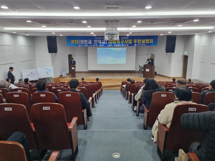 경북도는 5일 포항 오천읍민복지회관에서 청림동, 제철동, 오천읍 주민, 도의원 및 관계 공무원 등이 참석한 가운데 ‘냉천교·인덕교 재해복구사업’과 관련한 주민설명회를 개최했다.