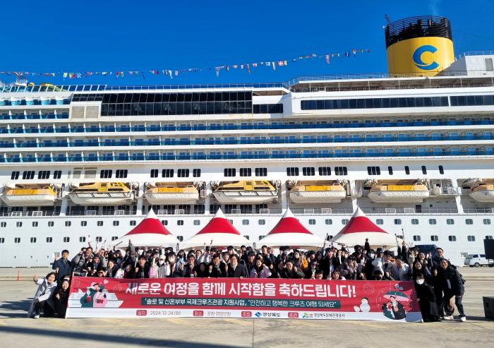 경북도는 24일 포항 영일만항에서 경북도 ‘만남주선’ 사업에서 선발된 솔로 커플과 신혼부부의 국제크루즈 여행 축하 행사를 했다.