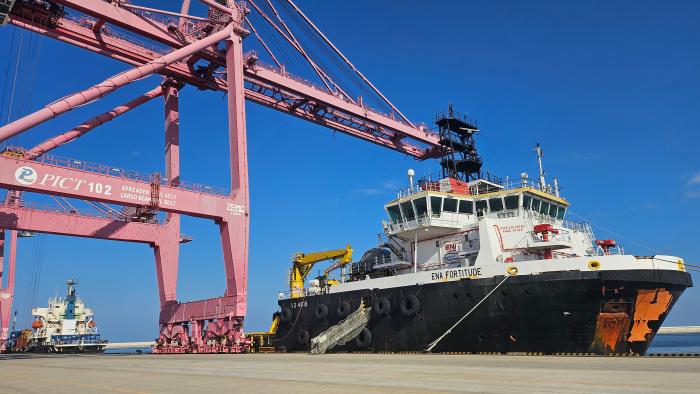 영일만항, 동해심해가스전 개발 탐사시추 보급선 하역작업 진행