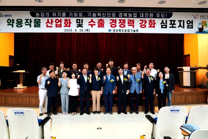 경북도농업기술원은 26일 약용작물 산업의 고부가가치화 및 세계시장 진출 전략을 모색하기 위한 ‘약용작물 산업화 및 수출 경쟁력 강화 심포지엄’을 개최했다.