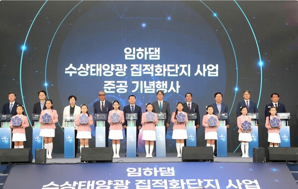 안동시 임하댐 다목적댐공원에서 25일, 국내 최대 규모의 수상태양광 발전시설인 ‘임하댐 수상태양광 신재생에너지 집적화단지’의 준공식이 열렸다.