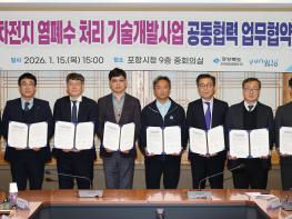 경북도는 15일 포항시청 중회의실에서 이차전지 산업의 난제로 꼽히는 염폐수 처리 기술개발을 위한 업무협약(MOU)을 체결했다.