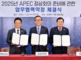 경북도와 외교부, 경주시는 원활히 진행되는 APEC 준비 상황을 점검하고, 향후 더 체계적이고 신속한 업무 추진을 위해 3자 간 ‘2025년 APEC 정상회의 업무협력 MOU’를 체결했다고 22일 밝혔다.