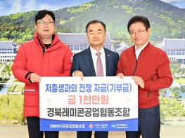 경북레미콘공업협동조합은 지난 12일 경북도청을 방문해 저출생과의 전쟁 자금 1,000만원을 전달했다고 22일 밝혔다.