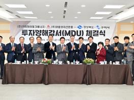 경북도는 13일 구미시청 대회의실에서 4개 기관(경북도, 구미시, ㈜구미하이테크에너지, ㈜코람자산운용)이 AI데이터센터+수소연료전지발전소 건립을 위한 투자협약(MOU)을 체결했다.