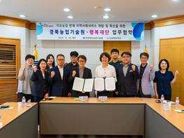 경북도청 전경경북도농업기술원과 경북행복재단은 20일 ‘치유농업을 활용한 지역사회 서비스 모델 개발과 치유농업 확산을 위한 업무협약’을 체결했다. 이번 협약은 치유농업의 사회적 가치와 경…