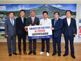 경북도청대한주택건설협회는 6일 경북도청에서 이철우 경북도지사, 대한주택건설협회 정원주 회장, 장시철 경북도회장(경동주택건설 대표) 등이 참석한 가운데 저출생 문제 극복을 위한 성금 2천만 원을 전…