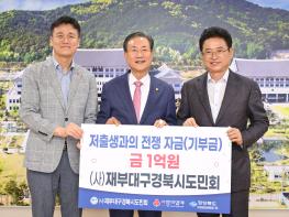 재부대구경북시도민회가 지난 19일 경북도가 주도적으로 추진하는 저출생과의 전쟁 승리와 저출생 극복 온국민 기부운동 확산을 위해 저출생 극복 성금 1억원을 경북도에 전달했다.