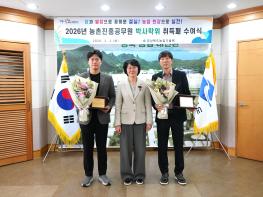 경북농업기술원은 3일 전문 연구 역량 강화를 위해 박사학위를 취득한 농촌진흥공무원 2명에게 박사학위 취득패를 수여하고 격려했다.