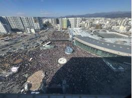 ‘탄핵 무효’'윤석열 석방’ 등 윤 대통령 탄핵 반대를 외치는 시민들로 가득했다. 탄핵 반대 집회가 열리는 동대구역 광장, 코레일 철도역인 동대구역사 내까지 몰려들었다. 기독교 단체인 ‘세이브코리아’가 주관하는 윤석열 대통령 탄핵 반대 집회에 참석하기 위해서였다. 집회 참여 인원은 5만 2000여 명으로 경찰이 추산했다. 지난주 부산에서 열린 탄핵 반대 집회보다 4배 더 많은 수치다. 경찰 관계자는 “대구에서 단일 집회 참석 인원으로는 역대 최대급으로 추정된다”고 말했다.동대구역 광장이 집회 인원들로 가득차자 시민 1000여명은 광장 너머 택시승강장과 버스정류장에서 태극기와 성조기를 흔들며 “탄핵을 반대한다”고 외쳤다.