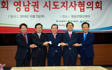 2일 경북도에 따르면 권영진 대구시장, 김관용 경북지사와 서병수 부산시장, 김기현 울산시장, 홍준표 경남지사 등 5개 시도의 시장과 지사는 이날 경남 창원에서 시·도지사협의회를 열고 신공항 등 주요 현안을 논의했다.