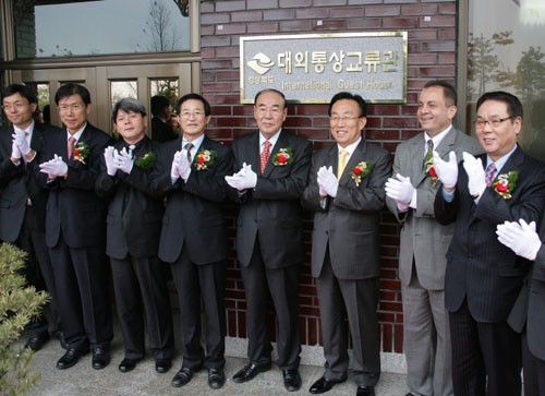 | ▲김관용 도지사가 관사 1층에 대외통상교류관 현판식을 갖고 있다. |