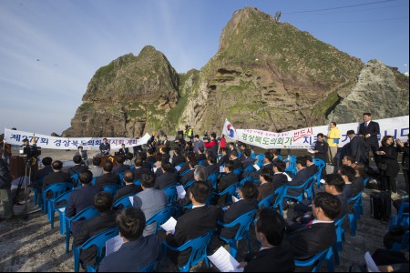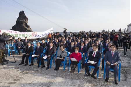 경북도의회는 23일 독도 선착장에서 제277회 임시회 제1차 본회를 개회하고 일본의 독도 도발을 규탄하는 결의대회를 열었다.