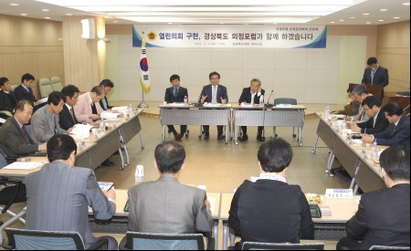 이번 회의에는 홍진규 의회운영위원장(군위), 조현일 부위원장(경산)이 참석한 가운데 경상북도의회의 2015년 주요업무계획에 대한 설명을 듣고, 의정포럼의 기능과 주요 현안사항에 대한 심도 있는 토론을 통해 도의회와 상호 소통·협력을 강화할 수 있는 계기를 마련하는데 의견을 같이 했다.