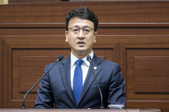 김상헌 도의원이 1일 제304회 제1차 정례회 제1차 본회의 5분 자유발언을 통해 전국 17개 시·도 중 경북도의 무상급식 정책이 전국 꼴찌를 달리고 있다고 지적하면서 내년부터라도 고등학교까지 전면 무상급식을 추진할 것을 강력히 촉구하고 있다<사진=경북도의회 제공>