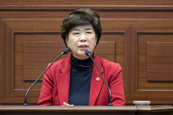 박차양 경북도의원이 15일 세계 속의 독도 알리기를 강화하기 위하여 울릉도 도동항 입구에 안용복 장군 동상 건립을 촉구하고 있다<사진=경북도의회 제공>