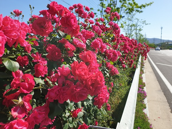 도로변 장미꽃은 진량읍에서 자인면으로 진입하는 남촌네거리~대경대사거리 구간과 경산 방향에서 자인면으로 진입하는 관문인 자인교~경산시 농업기술센터 구간에 식재되어 있다.