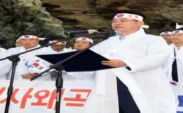 이철우 경북도지사는 10일 오후 4시30분 독도선착장에서 열린 '제309회 경상북도의회 제1차 정례회 제1차 본회의 및 독도수호 결의대회'에 참석, 결의문을 발표하고 있다<사진=경북도 제공>