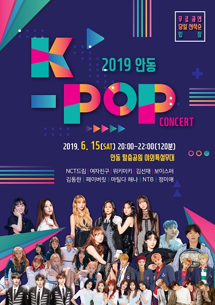 안동시와 경상북도는 오는 15일 저녁 8시 안동탈춤공원에서 ‘2019 안동 K-POP 콘서트’를 개최한다고 밝혔다.