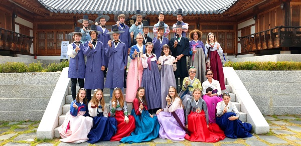 지난 17일 독일 괴팅엔고등학교 학생들과 교사들이 안동 예움터에서 한복을 입고 한국의 전통문화를 즐겼다.