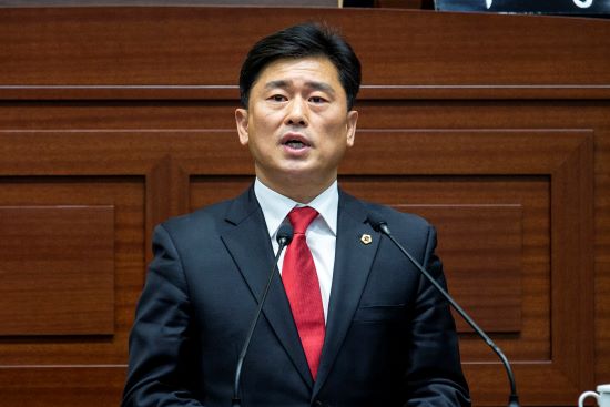 김대일 도의원이 29일 제 313회 경상북도의회 임시회 제1차 본회의에서 5분 자유발언을 하고 있다<사진=경북도의회 제공>