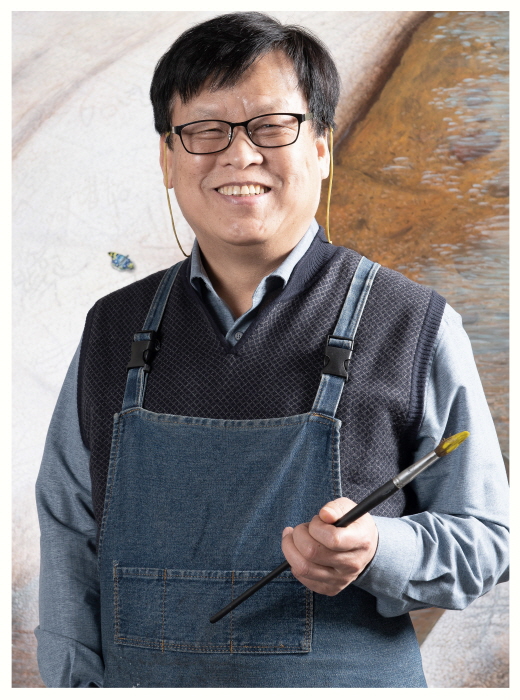 "영덕이 고향으로 나고 자란 환경적 요인이 많았다고 생각합니다. 산 높고 골 깊은 태백산맥 끝자락 칠보산(七寶山)이 있고, 넓은 들을 가로 지르는 강을 따라 바다가 보이는 곳에서 성장했습니다. 해변에는 형형색색 이쁜 조약돌, 다양한 모양의 조약돌이 지천에 깔려있었습니다. 이러한 환경이 천연의 스승인 셈이었고 예술적 감성을 갖추기에 특별한 동기부여가 되었다고 봅니다. 처음에는 수묵 위주의 작업이었지만 장르 경계를 허물고 재료에 제한을 두지 않는 작업으로 80년대부터 변화를 거듭하는 돌(石) 그림에 중심을 두고 있습니다."