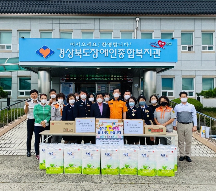 안동소방서 여성의용소방대 나눔봉사단이 22일 경상북도장애인종합복지관(관장 이경기)에 추석맞이 후원물품을 전달했다.