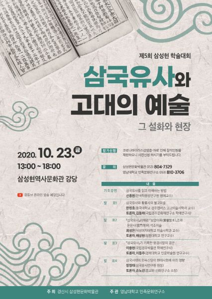 삼성현문화박물관(관장 양훈근)에서는 제5회 삼성현 학술대회를 오는 23일에 개최하며, “삼국유사와 고대의 예술-그 설화와 현장-”이라는 주제로 기조강연 1회, 주제발표 및 토론을 각 4회 진행한다.