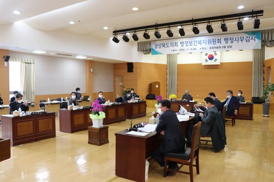 경북도의회 행정보건복지위원회는 9~13일 중 4일간에 걸쳐 행정보건복지위원회 소관 산하기관에 대한 현지 행정사무감사 활동을 실시한다. 첫날 일정으로 11월 9일 포항의료원, 경북도인재개발원, 경북학숙에 대한 2020년도 행정사무감사를 실시했다.
