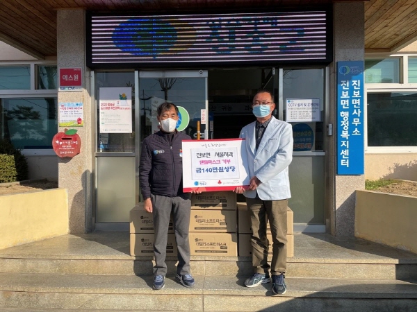 청송군 진보면 소재 서울치과의원(원장 채기훈) 지난 13일 코로나19로 어려움을 겪고 있는 지역 주민을 위해 200만원 상당의 덴탈마스크(10,000매)를 진보면에 기증했다.