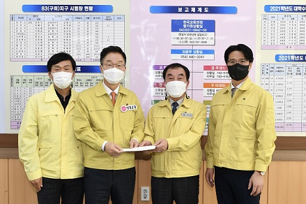 경북도의회 교육위원회 조현일 위원장과 정세현 위원은 수능을 하루 앞둔 2일 오전 구미교육지원청에 설치된 2021학년도 대학수학능력시험 경북본부를 방문했다.